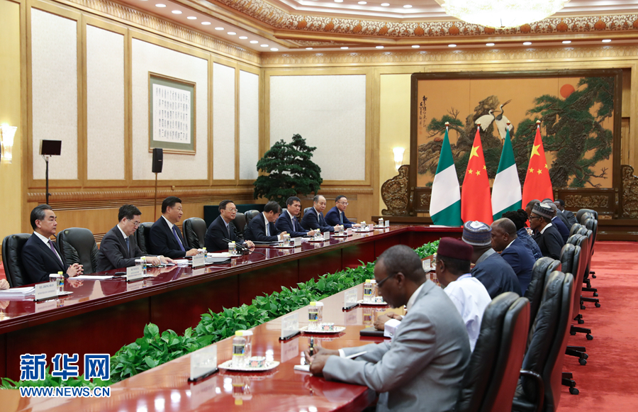 習近平強調,在中非雙方共同努力下,中非合作論壇北京峰會成功閉幕,中非全面戰(zhàn)略合作伙伴關系的內涵進一步充實豐富,成為中非團結合作的一次歷史性盛會。尼日利亞是非洲大國,也是中國在非洲重要的合作伙伴,我高度重視中尼關系發(fā)展。兩國關系正處于歷史上最好時期。中方贊賞尼日利亞政府堅持一個中國政策,愿繼續(xù)同尼方在涉及彼此核心利益和重大關切問題上相互理解和支持。中方歡迎尼方參與“一帶一路”建設,愿同尼方深化基礎設施建設、農業(yè)、產能等領域合作,密切人文交流,助力尼日利亞經濟社會發(fā)展,將中尼合作打造成中非合作的典范。