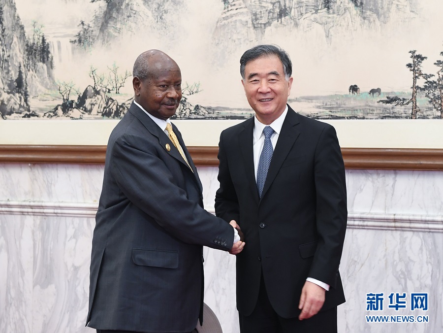 9月6日,全國政協(xié)主席汪洋在北京釣魚臺國賓館會見烏干達(dá)總統(tǒng)穆塞韋尼?!⌒氯A社記者 申宏 攝