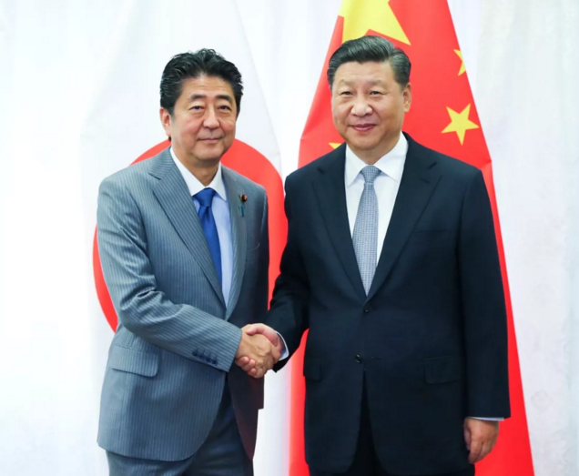 9月12日,國(guó)家主席習(xí)近平在符拉迪沃斯托克會(huì)見(jiàn)日本首相安倍晉三。新華社記者 謝環(huán)馳 攝