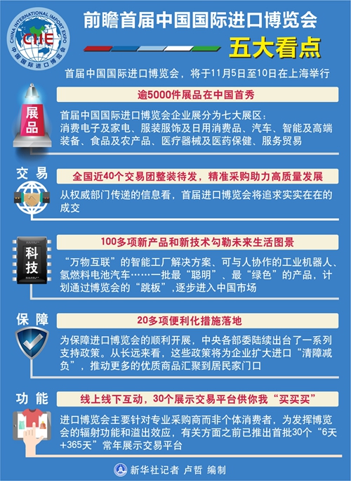 圖表:前瞻首屆中國國際進(jìn)口博覽會五大看點(diǎn) 新華社記者 盧哲 編制