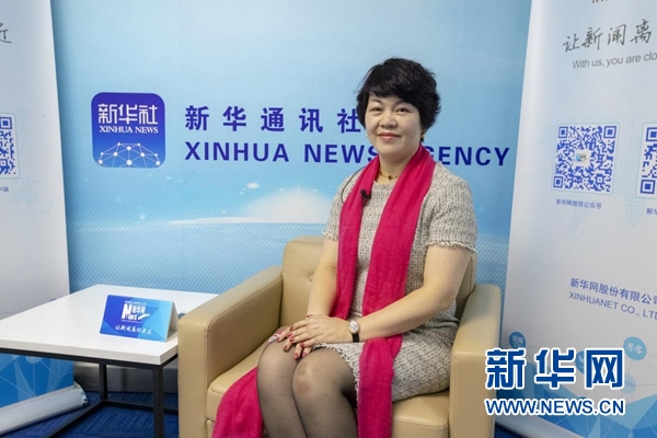 圖為來伊份聯(lián)合創(chuàng)始人兼總裁郁瑞芬接受新華網(wǎng)獨家專訪。新華網(wǎng) 趙煜彤攝