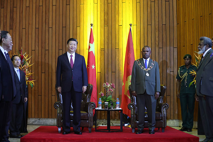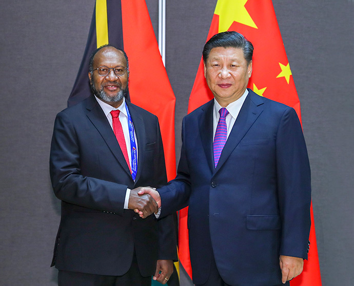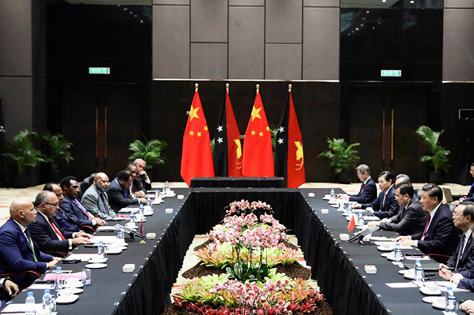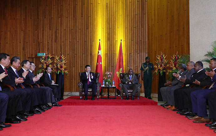 11月16日,國家主席習(xí)近平在莫爾茲比港分別會(huì)見建交太平洋島國領(lǐng)導(dǎo)人。這是習(xí)近平會(huì)見紐??偫硭?。新華社記者 丁林 攝