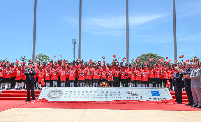 11月16日,國家主席習(xí)近平在莫爾茲比港和巴布亞新幾內(nèi)亞總理奧尼爾共同出席中國援建的布圖卡學(xué)園啟用儀式。 新華社記者 謝環(huán)馳 攝