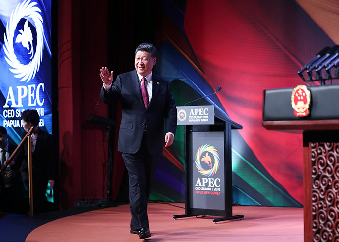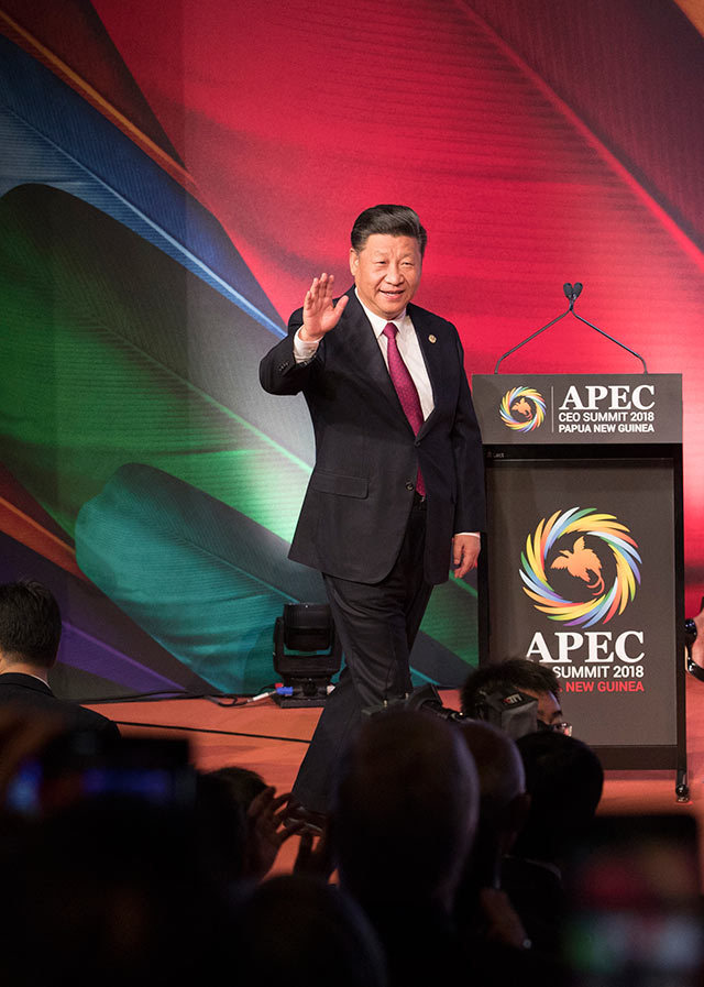 11月17日,國家主席習(xí)近平應(yīng)邀出席在巴布亞新幾內(nèi)亞莫爾茲比港舉行的亞太經(jīng)合組織工商領(lǐng)導(dǎo)人峰會并發(fā)表題為《同舟共濟(jì)創(chuàng)造美好未來》的主旨演講。新華社記者 鞠鵬 攝