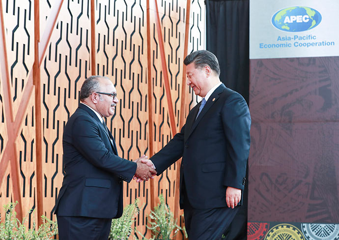 11月17日,國家主席習(xí)近平應(yīng)邀出席在巴布亞新幾內(nèi)亞莫爾茲比港舉行的亞太經(jīng)合組織工商領(lǐng)導(dǎo)人峰會并發(fā)表題為《同舟共濟(jì)創(chuàng)造美好未來》的主旨演講。同日,習(xí)近平還出席了亞太經(jīng)合組織領(lǐng)導(dǎo)人同工商咨詢理事會代表對話會,受到巴布亞新幾內(nèi)亞總理奧尼爾的熱情迎接。新華社記者 龐興雷 攝