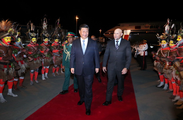 2018年11月15日,國家主席習近平乘專機抵達莫爾茲比港,開始對巴布亞新幾內(nèi)亞獨立國進行國事訪問、同建交太平洋島國領導人會晤并出席亞太經(jīng)合組織第二十六次領導人非正式會議。(新華社記者鞠鵬攝)