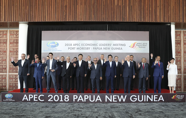 2018年11月18日,亞太經(jīng)合組織第二十六次領導人非正式會議在巴布亞新幾內(nèi)亞莫爾茲比港舉行。國家主席習近平出席并發(fā)表題為《把握時代機遇 共謀亞太繁榮》的重要講話。會議開始前,習近平同其他亞太經(jīng)合組織經(jīng)濟體領導人、代表合影。(新華社記者丁林攝)