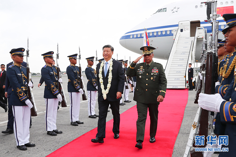 11月20日,國家主席習近平抵達馬尼拉,開始對菲律賓共和國進行國事訪問。這是習近平在機場受到菲律賓政府高級官員熱情迎接。 新華社記者 黃敬文 攝