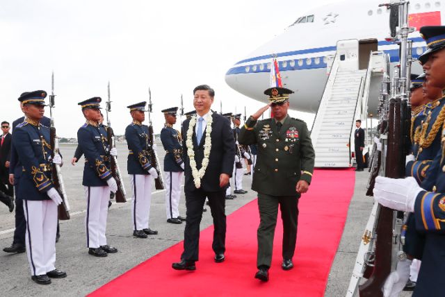 11月20日,國家主席習(xí)近平抵達(dá)馬尼拉,開始對菲律賓共和國進(jìn)行國事訪問。這是習(xí)近平在機(jī)場受到菲律賓政府高級官員熱情迎接。新華社記者黃敬文攝
