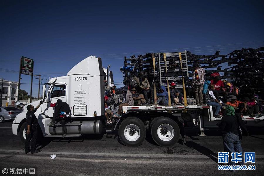 大批中美洲移民持續(xù)抵近美墨邊境 敞篷車上擠滿人