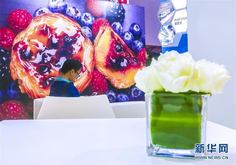 2018年11月6日,在中國上海,一位男士坐在中國國際進(jìn)口博覽會的葡萄牙展區(qū)內(nèi)。新華社記者 殷剛 攝