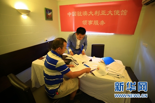 ?。玻橙眨袊?guó)駐澳大利亞使館的五名官員從首都堪培拉來到4000公里以外位于澳大利亞北部的港口城市達(dá)爾文,就領(lǐng)事保護(hù)和教育等方面的問題同當(dāng)?shù)亓魧W(xué)生和華僑華人進(jìn)行交流并現(xiàn)場(chǎng)辦公。
