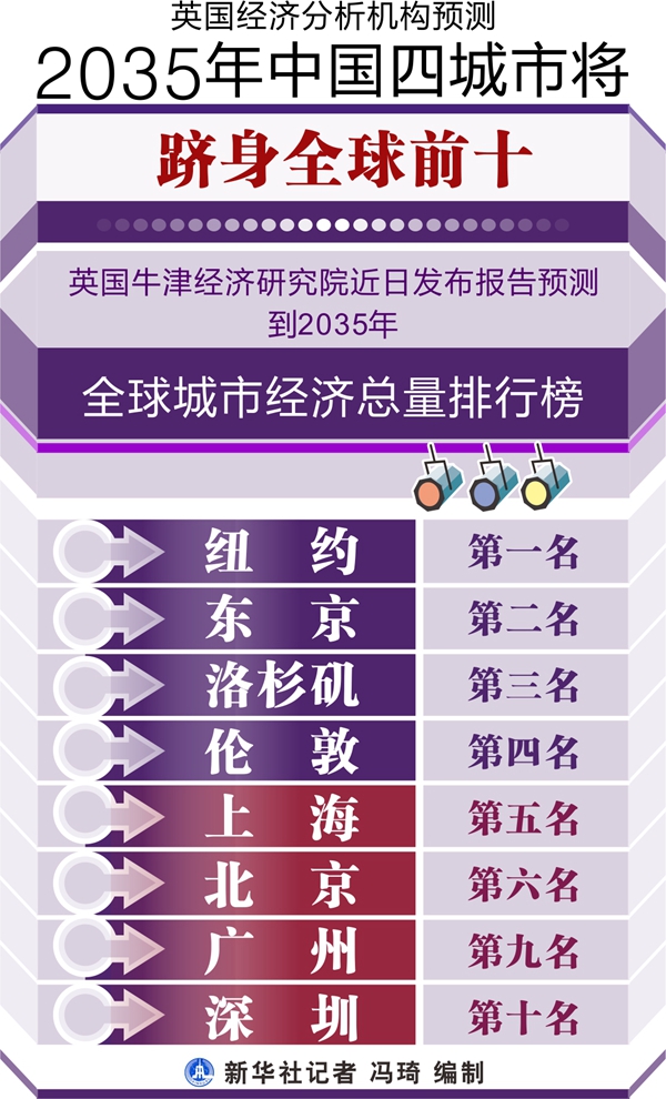 英國(guó)經(jīng)濟(jì)分析機(jī)構(gòu)預(yù)測(cè)2035年中國(guó)四城市將躋身全球前十 新華社記者 馮琦 編制