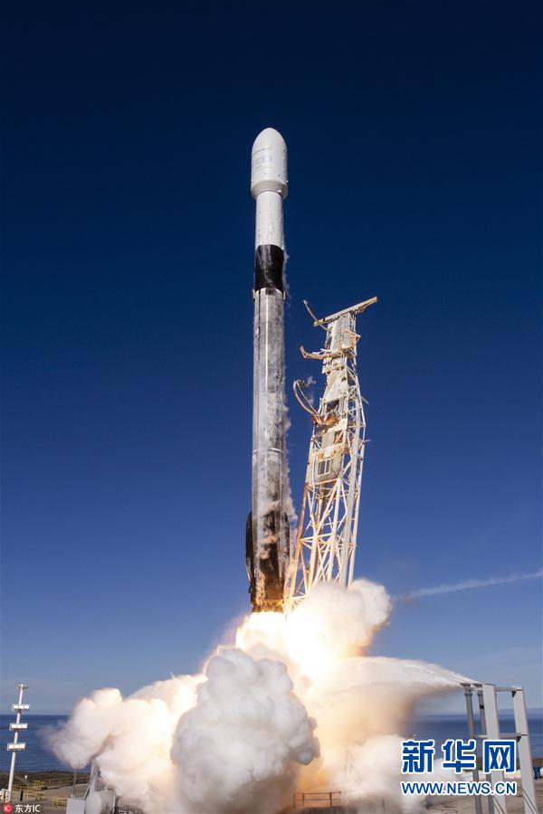 當(dāng)?shù)貢r(shí)間2018年12月3日,SpaceX的“獵鷹9”火箭在加州范登堡空軍基地成功發(fā)射,攜帶64顆衛(wèi)星升空。(圖片來源:東方IC)