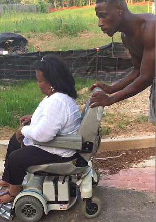 6月14日,美國(guó)佐治亞州,一名男子酷暑下推了30分鐘輪椅,幫助因輪椅電池?fù)p壞被困路中間的殘疾女士回家。