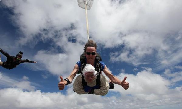 12月9日,澳大利亞蘭霍恩溪,102歲的老奶奶奧謝玩高空跳傘,給運(yùn)動(dòng)神經(jīng)元疾病研究籌措資金。這種病2008年奪去了她女兒的生命。