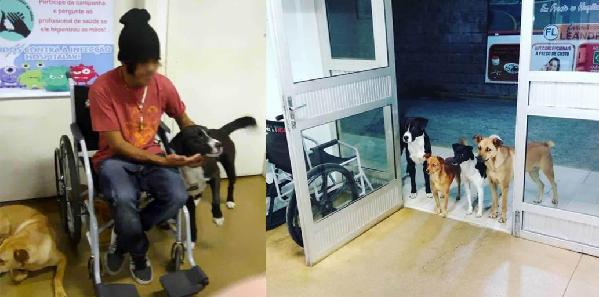 12月16日,巴西流浪漢塞薩爾凌晨求醫(yī),他的“家屬”——四只流浪狗趕來(lái)“陪護(hù)”。