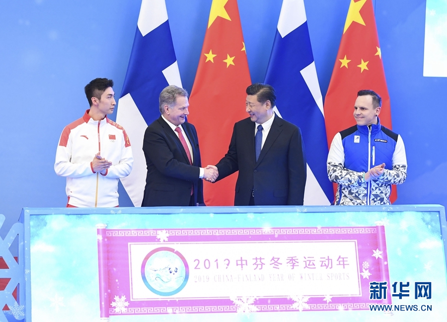 簽字儀式后,習(xí)近平同尼尼斯托共同出席了“2019中芬冬季運(yùn)動(dòng)年”啟動(dòng)儀式。習(xí)近平在致辭中指出,新中國(guó)第一次走上奧運(yùn)賽場(chǎng)就是參加1952年芬蘭赫爾辛基奧運(yùn)會(huì),五星紅旗第一次在奧林匹克體育場(chǎng)上升起。中芬冬季運(yùn)動(dòng)發(fā)展契合度高、互補(bǔ)性強(qiáng),合作潛力巨大。相信“2019中芬冬季運(yùn)動(dòng)年”將推動(dòng)兩國(guó)體育合作邁上新臺(tái)階,共同為中芬人文交流注入新活力,不斷推動(dòng)中芬面向未來(lái)的新型合作伙伴關(guān)系邁上新臺(tái)階。尼尼斯托表示,中國(guó)已成為世界體育大國(guó)。芬中在體育領(lǐng)域結(jié)緣已久。芬蘭支持中國(guó)成功舉辦2022年冬奧會(huì),很高興成為第一個(gè)同中國(guó)開(kāi)啟冬季運(yùn)動(dòng)年的國(guó)家,相信這將進(jìn)一步促進(jìn)兩國(guó)人民的友誼。中國(guó)正在向冬季運(yùn)動(dòng)強(qiáng)國(guó)邁進(jìn),芬蘭愿助一臂之力。