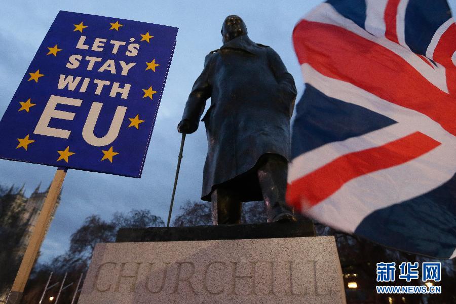 1月15日,在英國倫敦,民眾在議會大廈外的英國前首相丘吉爾雕像前參加集會。 英國議會下院15日投票否決了此前英國政府與歐盟達(dá)成的“脫歐”協(xié)議。在經(jīng)過5天辯論后,英國議會下院15日以432票反對、202票支持的投票結(jié)果否決了“脫歐”協(xié)議。 新華社發(fā)(蒂姆·愛爾蘭攝)