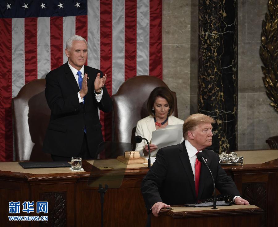 ??? 2月5日,在美國首都華盛頓,美國總統(tǒng)特朗普(前)在國會(huì)發(fā)表國情咨文演講。 新華社記者劉杰攝