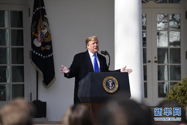 2月15日,美國(guó)總統(tǒng)特朗普在華盛頓白宮發(fā)表講話。新華社記者 胡友松 攝