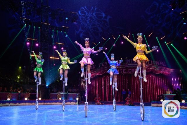 2018年1月19日,來自內蒙古民族藝術劇院雜技團的演員在摩納哥蒙特卡洛馬戲節(jié)上表演《五人踢碗》。新華社記者 陳益宸 攝