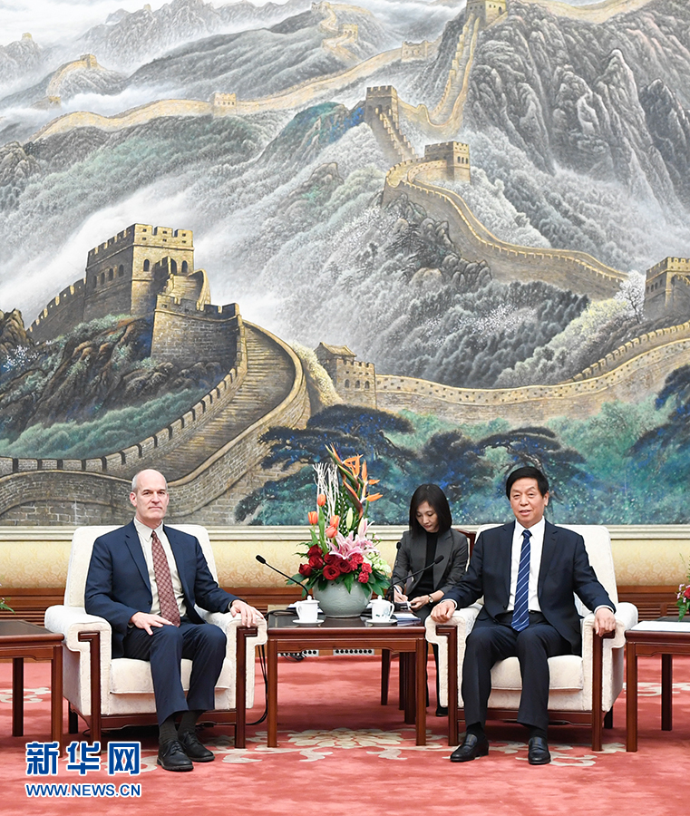 3月22日,全國(guó)人大常委會(huì)委員長(zhǎng)栗戰(zhàn)書(shū)在北京人民大會(huì)堂會(huì)見(jiàn)美國(guó)眾議院“美中工作小組”代表團(tuán)。 新華社記者申宏攝