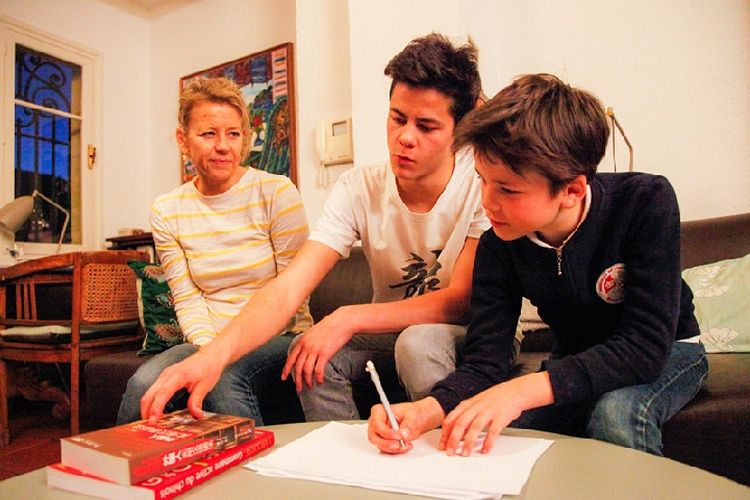 漢娜·丘吉爾和兩個兒子在家練習(xí)中文。新華社記者連振攝