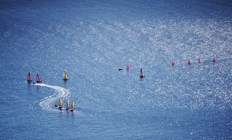 記者在摩納哥拍攝到的水上帆船。新華社記者費(fèi)茂華攝