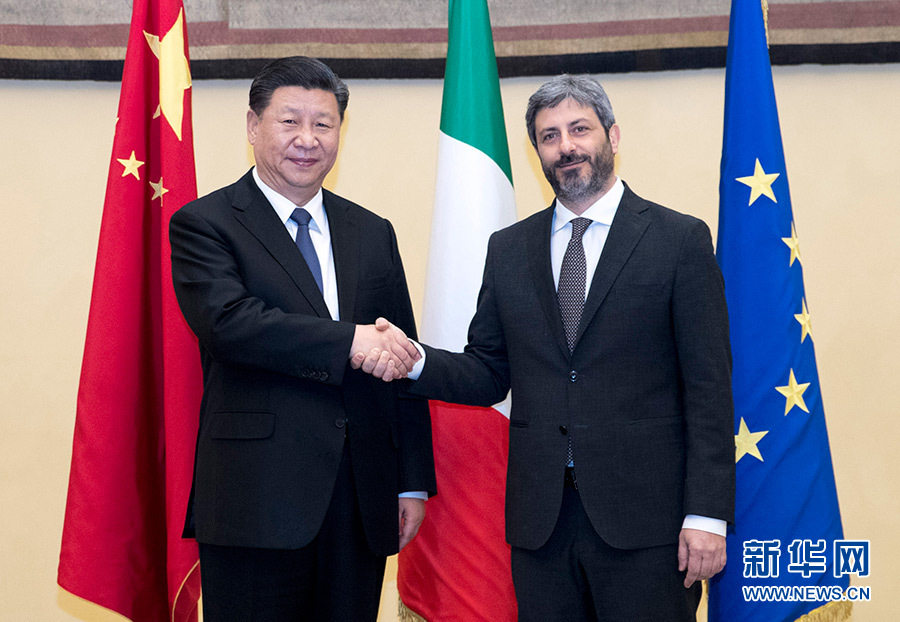 3月22日,國家主席習(xí)近平在羅馬會見意大利眾議長菲科。新華社記者 王曄 攝