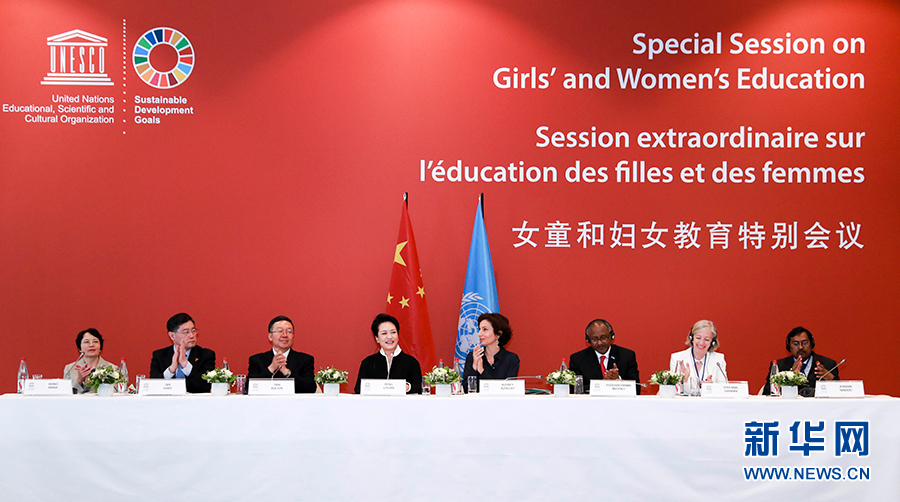訪(fǎng)問(wèn)期間,習(xí)近平主席夫人彭麗媛以聯(lián)合國(guó)教科文組織促進(jìn)女童和婦女教育特使身份出席在該組織巴黎總部舉行的女童和婦女教育特別會(huì)議?!芭睇愭陆淌谌硇耐度氪龠M(jìn)女童和婦女教育事業(yè)發(fā)展之中并發(fā)揮了重要作用?!薄案兄x中國(guó)給予聯(lián)合國(guó)教科文組織大力支持和合作?!痹摻M織總干事阿祖萊如是稱(chēng)贊。