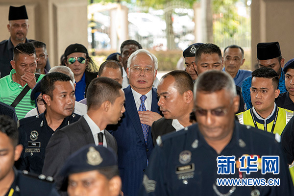 當天,法庭就納吉布受到的共7項涉及背信、濫用權(quán)力和洗錢指控進行了審理。納吉布被指控在涉及國家投資基金“一個馬來西亞發(fā)展公司”(“一馬公司”)前子公司SRC國際的交易中謀利4200萬林吉特(約合1030萬美元)。納吉布去年7月首次受到指控,現(xiàn)階段所受指控已累計超過40項,但他均予以否認。