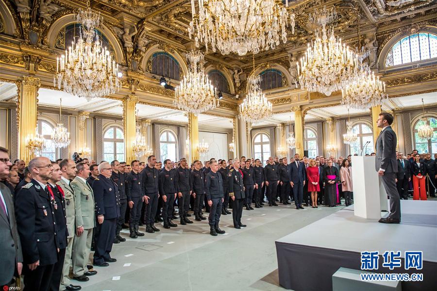 馬克龍接見參與巴黎圣母院救火任務(wù)消防員