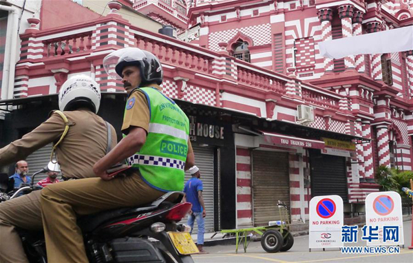 4月26日,在斯里蘭卡科倫坡,軍警在城市街道上警戒。新華社記者 顏昊 攝