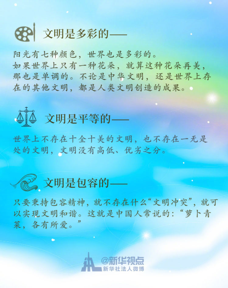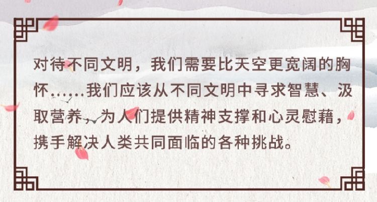 在這次演講中,習(xí)近平主席用生動(dòng)的語言講明了對(duì)待不同文明應(yīng)有的態(tài)度和原則: