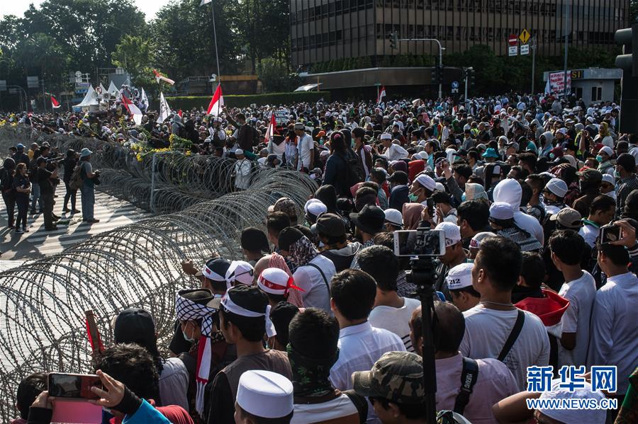 5月22日,在印度尼西亞首都雅加達(dá),示威者聚集在選舉監(jiān)督機(jī)構(gòu)外。新華社發(fā)(維里 攝)