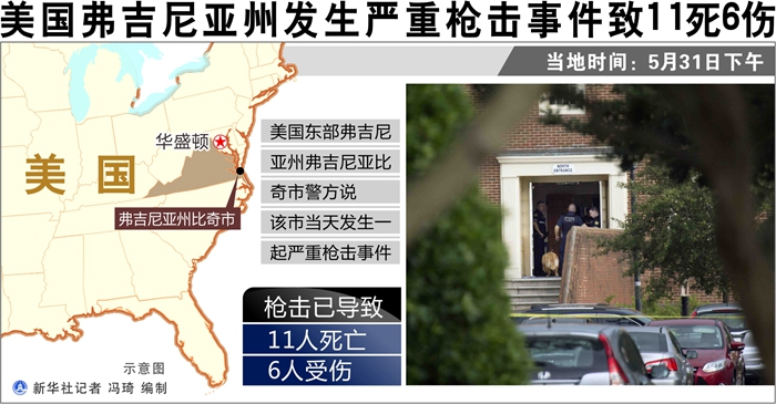 新華社華盛頓5月31日電(記者孫丁 徐劍梅)美國東部弗吉尼亞州弗吉尼亞比奇市警方5月31日通報說,該市當(dāng)天下午發(fā)生一起嚴(yán)重槍擊事件,已造成11人死亡、6人受傷。