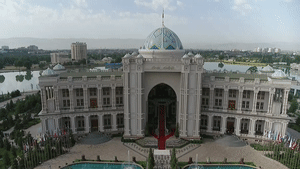15日下午,塔吉克斯坦總統(tǒng)府鏡廳內(nèi),燈火通明,金碧輝煌。