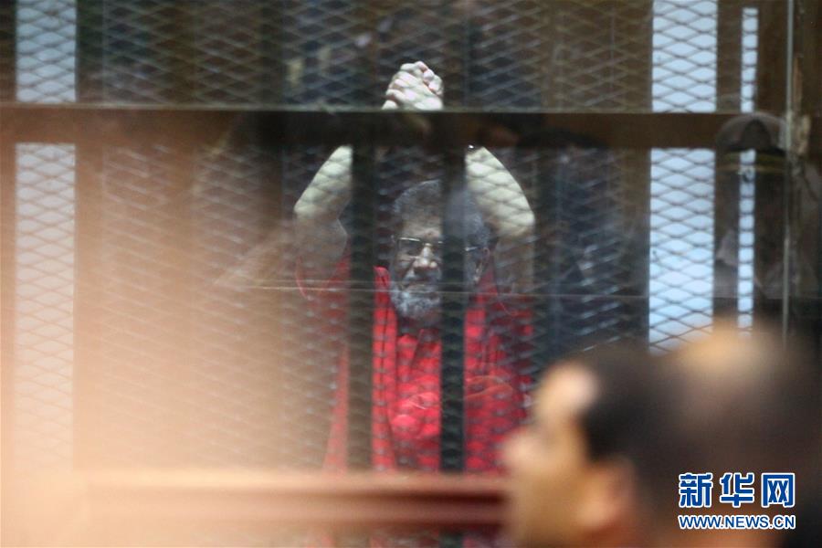 這是埃及前總統(tǒng)穆爾西在開羅一法庭接受庭審的資料照片(2016年6月18日攝)。埃及前總統(tǒng)穆爾西2019年6月17日在首都開羅去世,終年67歲。新華社發(fā)(艾哈邁德·戈馬攝)