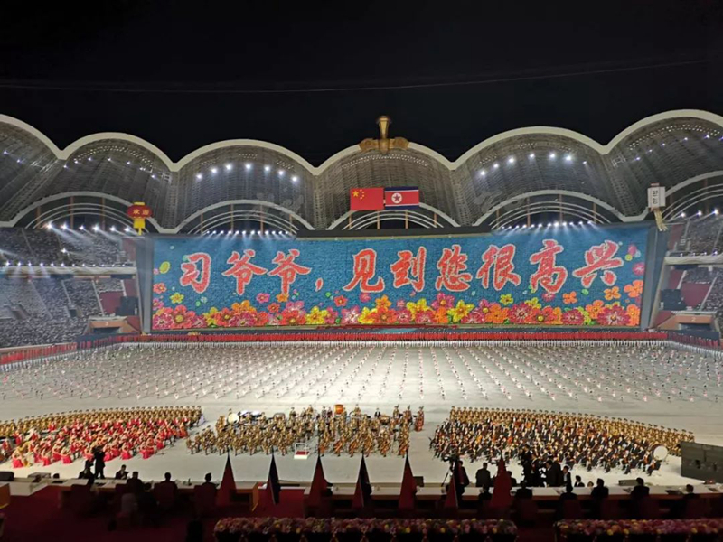 這臺演出為習近平此訪專門精心創(chuàng)作,數(shù)萬名朝鮮演員參加表演,朝鮮三大樂團首次同臺獻藝,整場演出氣勢恢宏、震撼感人。