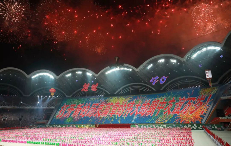 2018年9月,朝鮮為慶祝建國70周年打造了名為《輝煌的祖國》的大型團體操和藝術(shù)演出,反映朝鮮建國以來在各領(lǐng)域取得的成就。