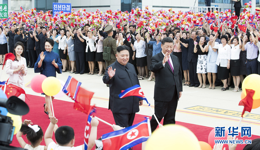 當(dāng)?shù)貢r(shí)間下午3時(shí)許,在朝鮮民眾夾道歡送中,習(xí)近平和彭麗媛抵達(dá)機(jī)場(chǎng),金正恩夫婦在下車處熱情迎接。朝鮮各界群眾在機(jī)場(chǎng)熱烈歡送,習(xí)近平向他們揮手致意。軍樂隊(duì)奏中朝兩國(guó)國(guó)歌,習(xí)近平在金正恩陪同下檢閱了朝鮮人民軍三軍儀仗隊(duì)。朝鮮少年兒童向習(xí)近平夫婦獻(xiàn)花。習(xí)近平同朝方前來送行的高級(jí)官員一一握手告別。在專機(jī)舷梯旁,習(xí)近平同金正恩緊緊握手話別。習(xí)近平夫婦邁上舷梯,在機(jī)艙門口轉(zhuǎn)身,向金正恩夫婦揮手告別。