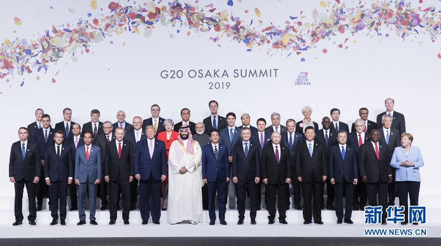 6月28日,二十國集團領導人第十四次峰會在日本大阪舉行。國家主席習近平出席并發(fā)表題為《攜手共進,合力打造高質量世界經濟》的重要講話。這是習近平同其他與會領導人合影。新華社記者 黃敬文 攝