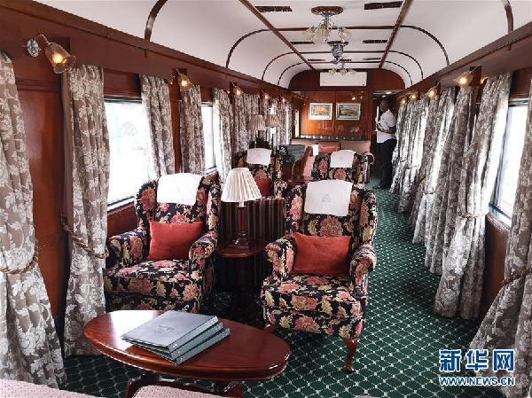 這是8月2日在安哥拉本格拉鐵路洛比托車站拍攝的“非洲之傲”號旅游列車車廂內(nèi)部。新華社發(fā)(柳志攝)
