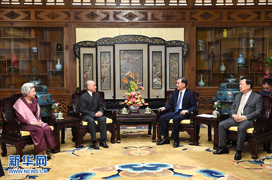 9月27日,全國政協(xié)主席汪洋在北京釣魚臺國賓館會見柬埔寨國王西哈莫尼和太后莫尼列。 新華社記者 饒愛民 攝