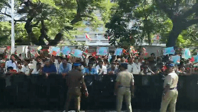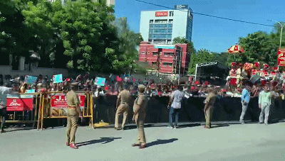 習(xí)主席的車隊(duì)駛離機(jī)場(chǎng)前往市區(qū)沿途,眾多當(dāng)?shù)貙W(xué)生和群眾簇?fù)碓诮值纼膳?,揮舞中印兩國國旗,手舉習(xí)主席和莫迪總理照片,歡呼“中印友好”,表達(dá)對(duì)習(xí)主席的熱烈歡迎。