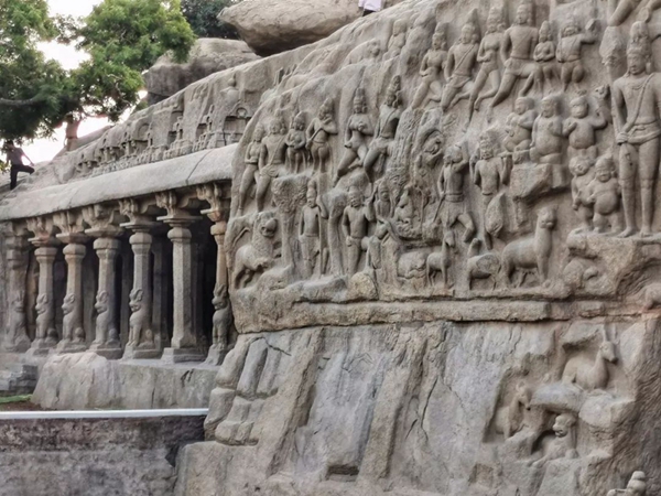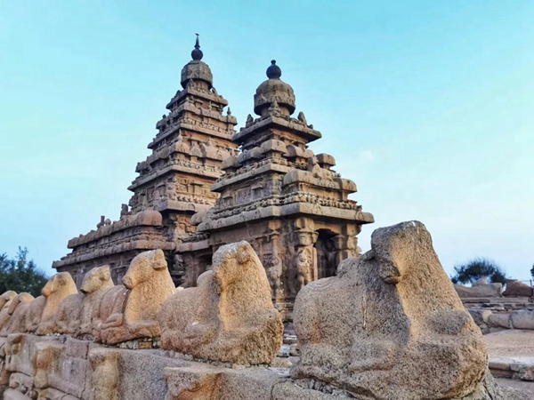 馬哈巴利普拉姆古寺廟建于公元7至8世紀(jì),由阿周那石雕、五戰(zhàn)車神廟、海岸神廟等古跡組成。