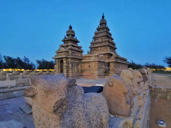 海岸神廟于公元700年至728年間建造,為南印度現(xiàn)存最古老的巖石結(jié)構(gòu)神廟之一。塔型建筑主要用于宗教祭祀。據(jù)傳,海岸最初有七座神廟,但因海岸線變化和海水侵蝕,最終只剩下一座,故此地又名“七塔寺”。新華社記者王曄攝
