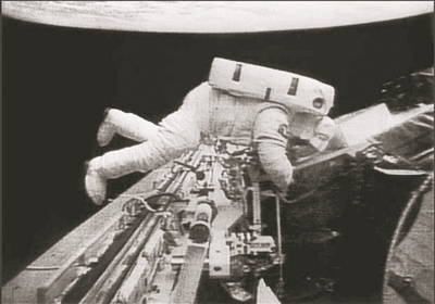 一系列準備工作妥當后,他終于打開了外部艙門,進入了距離地球100英里的太空。此時,只有一條16英尺長的繩子,連結(jié)著他和太空艙。這是人類第一次在脫離飛船的宇宙中鳥瞰地球,太空的浩渺讓列昂諾夫為之驚嘆,那里的景色讓他覺得有“難以形容的美麗”。