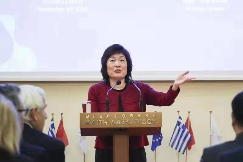 中國駐希臘大使章啟月在研討會上致辭。中國日報記者 匡林華 攝
